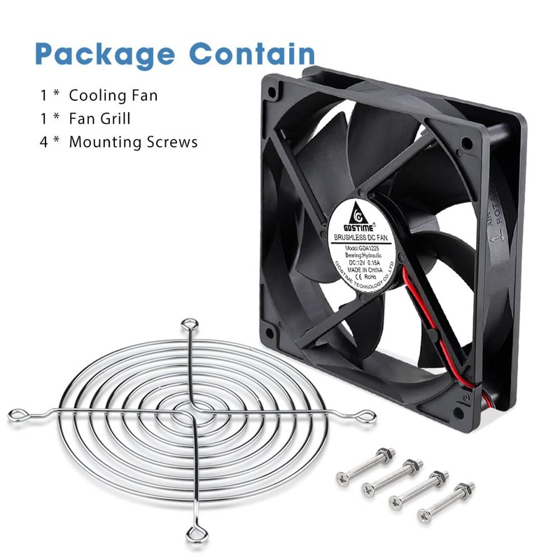 - Package list: 1 x 120 mm fan; 1 x metal grill; screw;