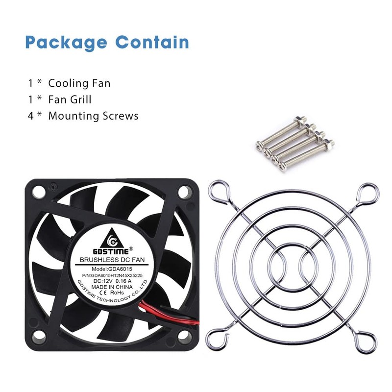 GDSTIME GDSTIME 60mm fan 12V 60mm computer fan 60 x 15mm PC case Cooler 4500 rpm speed for DIY cooling ventilation exhaust replacement