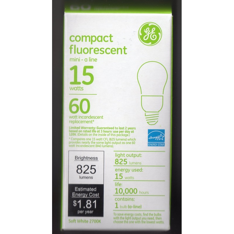 GE 89632 - FLE15/2/A19XL Pear A Line Screw Base Compact Fluorescent Light Bulb