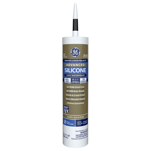 GE Advanced Silicone Window & Door Sealant Black, 10.1 oz, 1, Cartridge