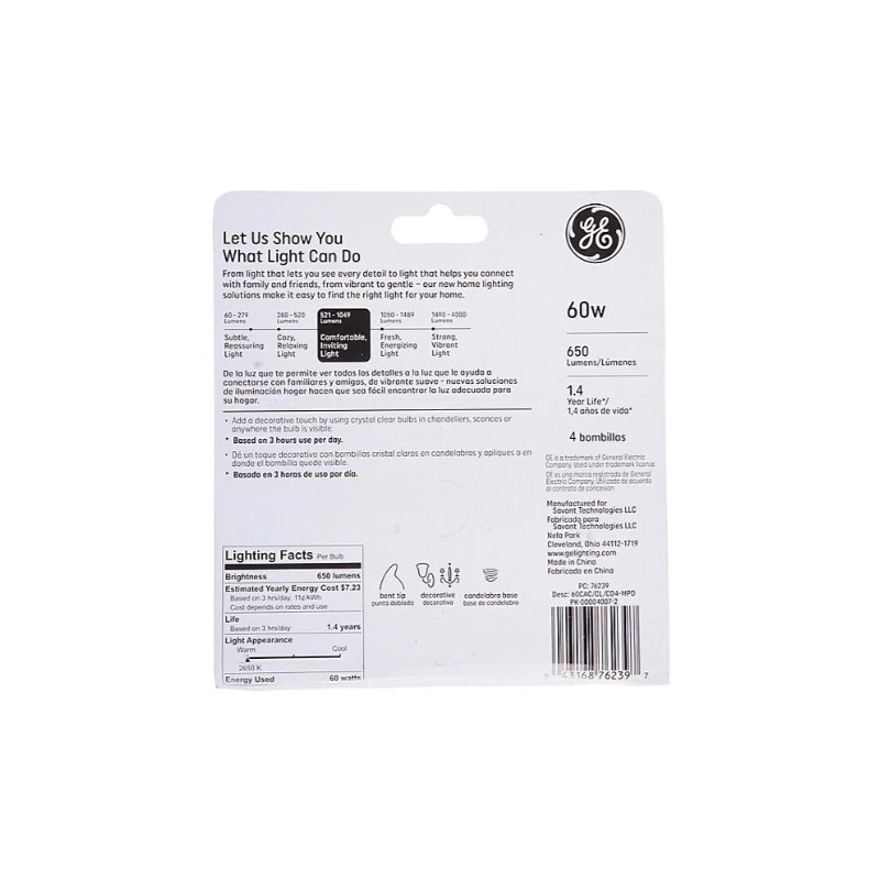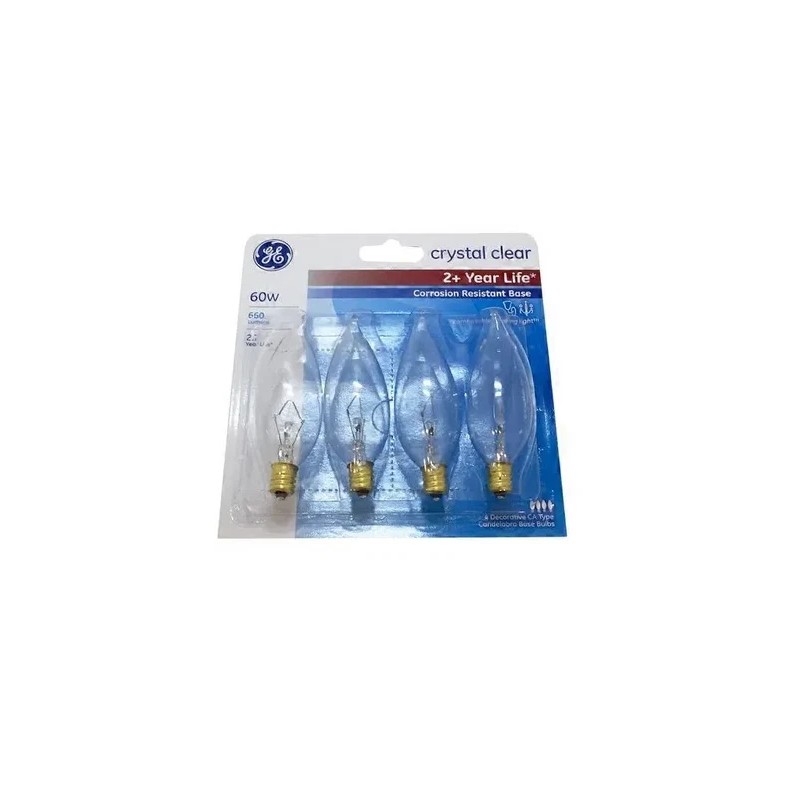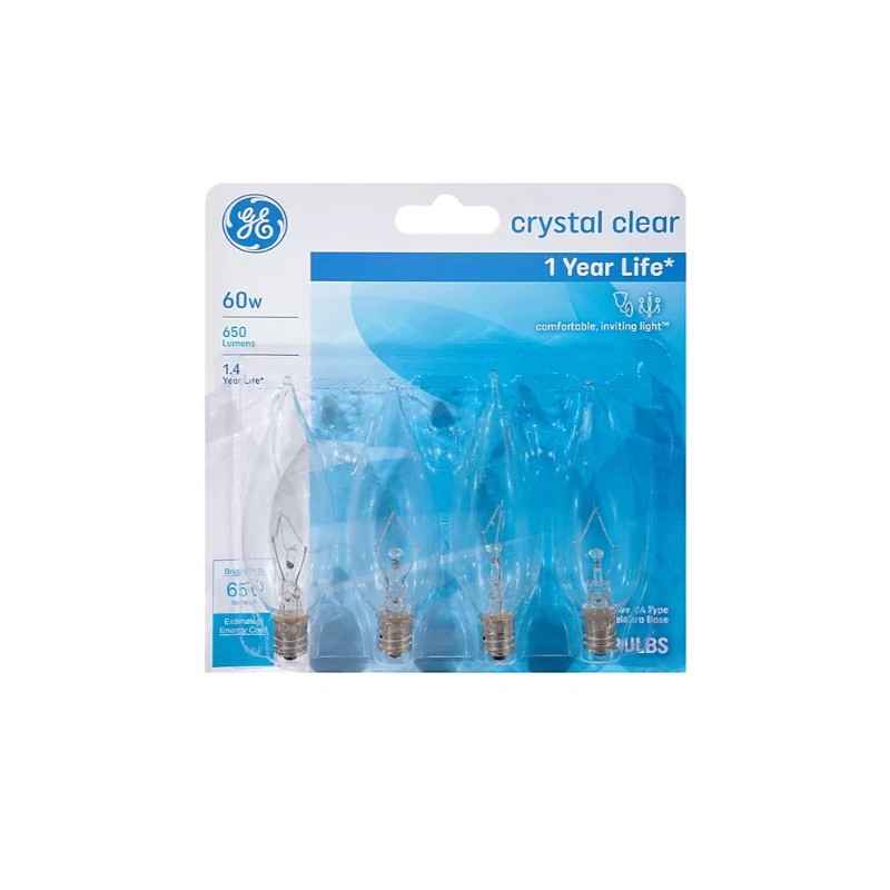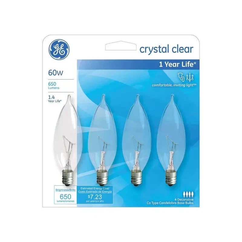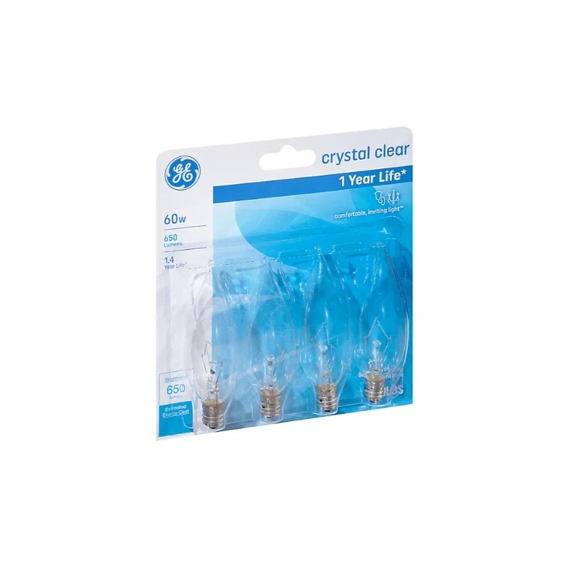 GE Crystal Clear CA Type Candelabra Base 60W 4ct Light Bulbs