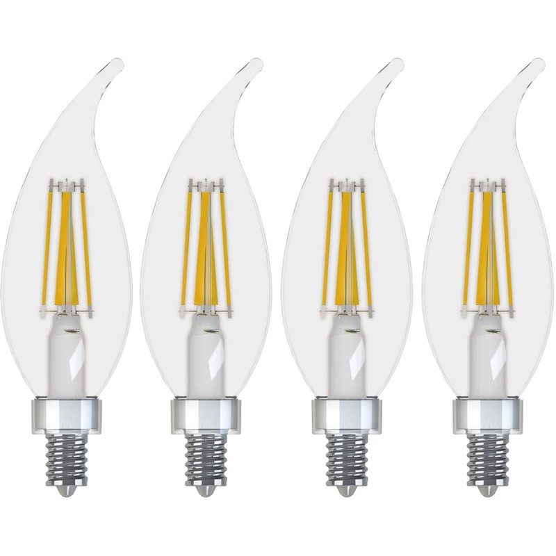GE Lighting 13330 Dimmable Decorative Soft White LED 6.5 (60-watt Replacement), 500-Lumen Bent Tip Light Bulb with Candelabra Base, 4 Count (Pack of 1), Daylight