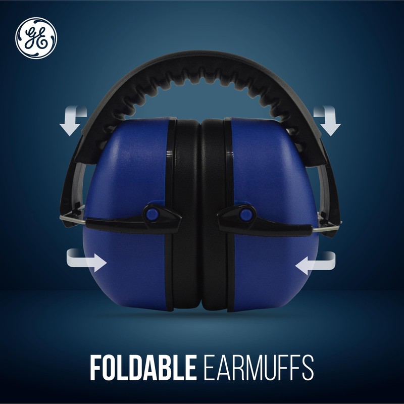 GE Folding Protective Earmuff for Noise Reduction, NRR 26dB Hearing Protection, Adjustable & Sound Proof Earmuffs for Work, Industrial & Construction Noise Protection. ANSI S3.19-1974 (Indigo/Black)