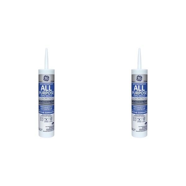 GE GE012A Silicone 1 All Purpose Sealant Caulk, 10.1oz, Clear - 12 Pack (2)