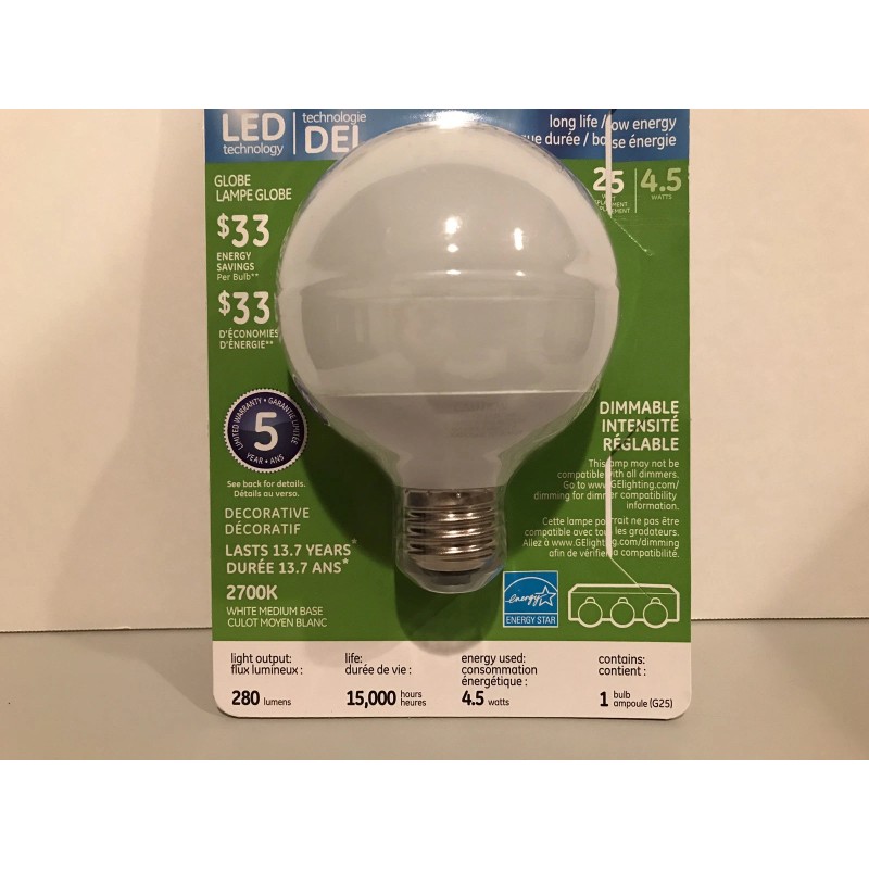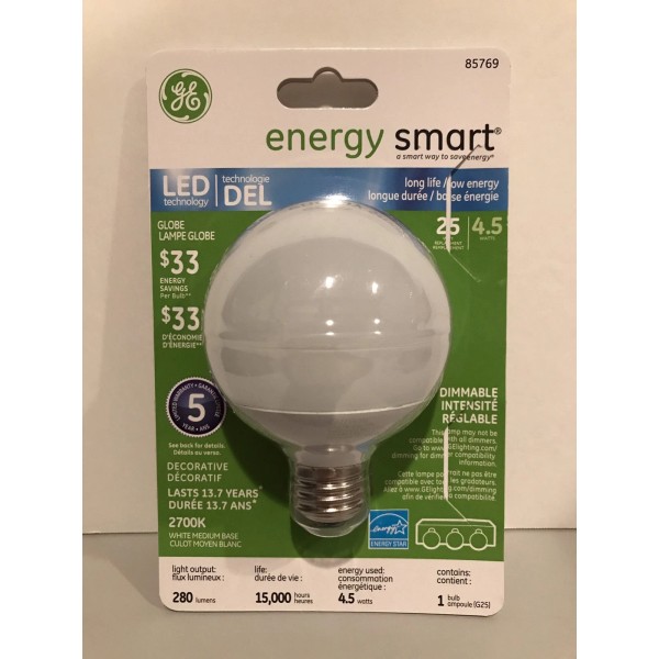 GE Lighting 85769 Energy Smart LED Bulb 4.5-Watt 25-Watt Replacement 280-Lumen