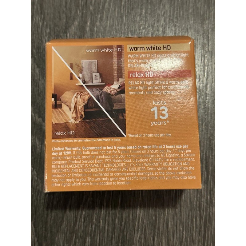 With a bulb life of 13 years, these dimmable LED bulbs are energy-efficient and environmentally friendly, rated A+++ - E. They have a voltage of 120 V and an amperage of 60 A, making them suitable for most household appliances. Upgrade your home lighting with the GE Relax 2-Pack LED bulbs and enjoy a brighter, more comfortable living space.
