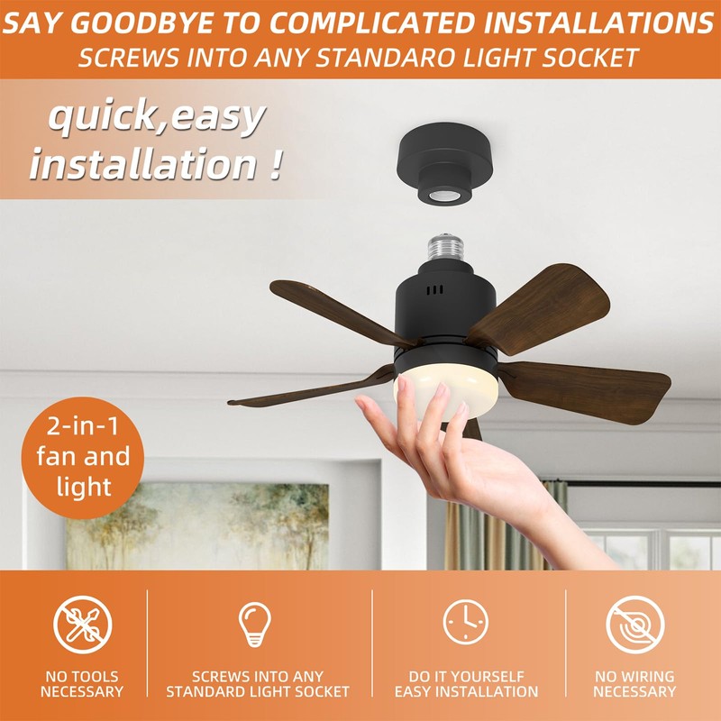 • Sockets ceiling fan with remote control: screw in the fan light, adjust the fan speed and lighting, and set a timer (24 hours), all from the comfort of your couch or bed. Adjustable 3 colour temperatures: warm light, natural light, cool light. Brightness: 10%-100%