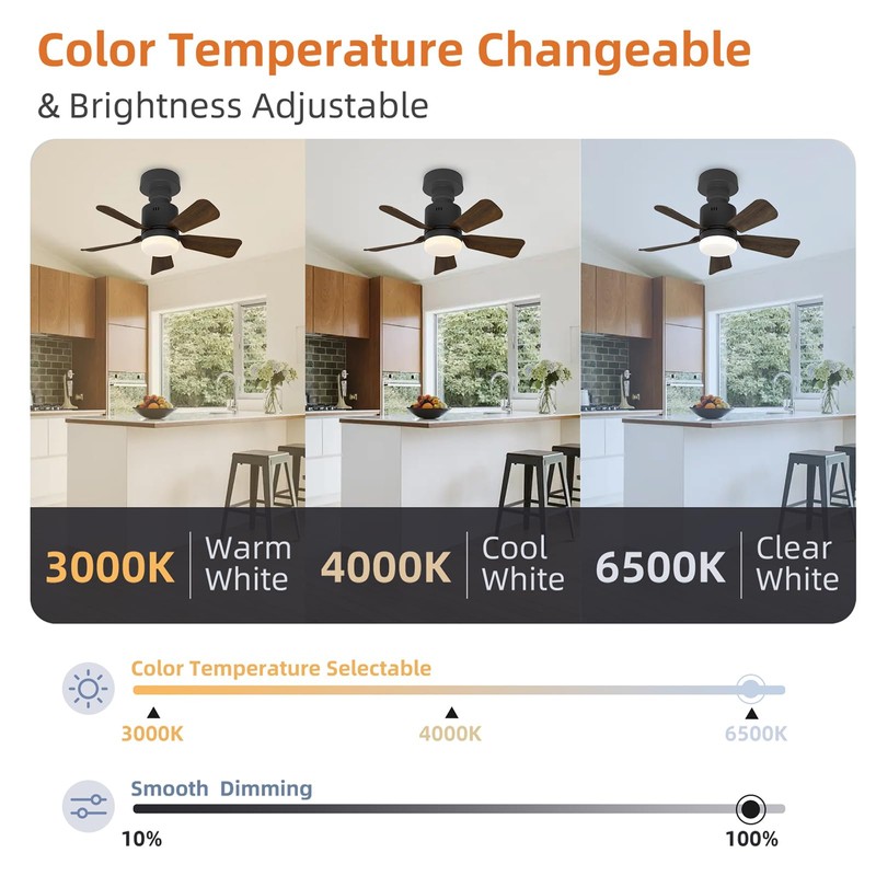 Adjust the fan speed and lighting and set a timer (24 hours), all from the comfort of your couch or bed. Adjustable 3 colour temperatures: warm light, natural light, cool light. Brightness: 10%-100%.