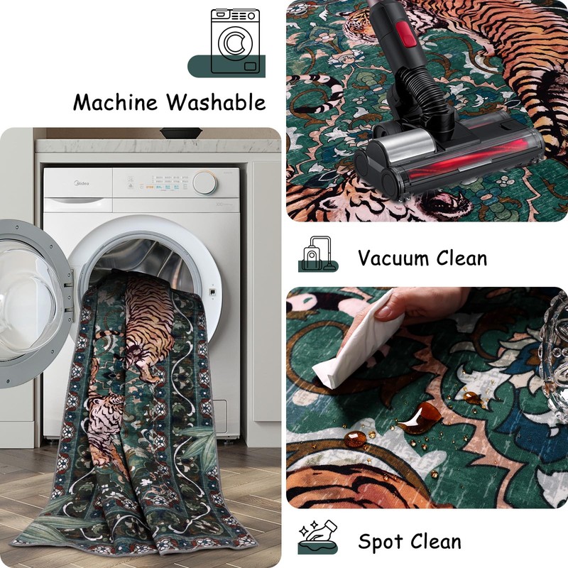 - UNIQUE TIGER RUG:Immerse your space in a regal ambiance with our washable tiger rug. Its harmonious color shades and meticulously crafted tiger design add an unparalleled natural and artistic flair, creating captivating and elegant atmosphere to any room