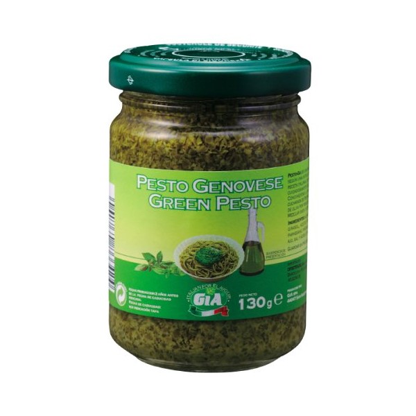 - Ingredients: Basil, sunflower oil, parmesan cheese, olive oil, pine seeds, cashew nuts, garlic, salt, acidulant (citric acid)