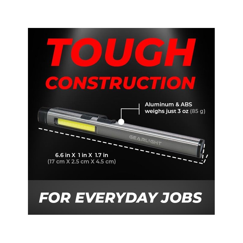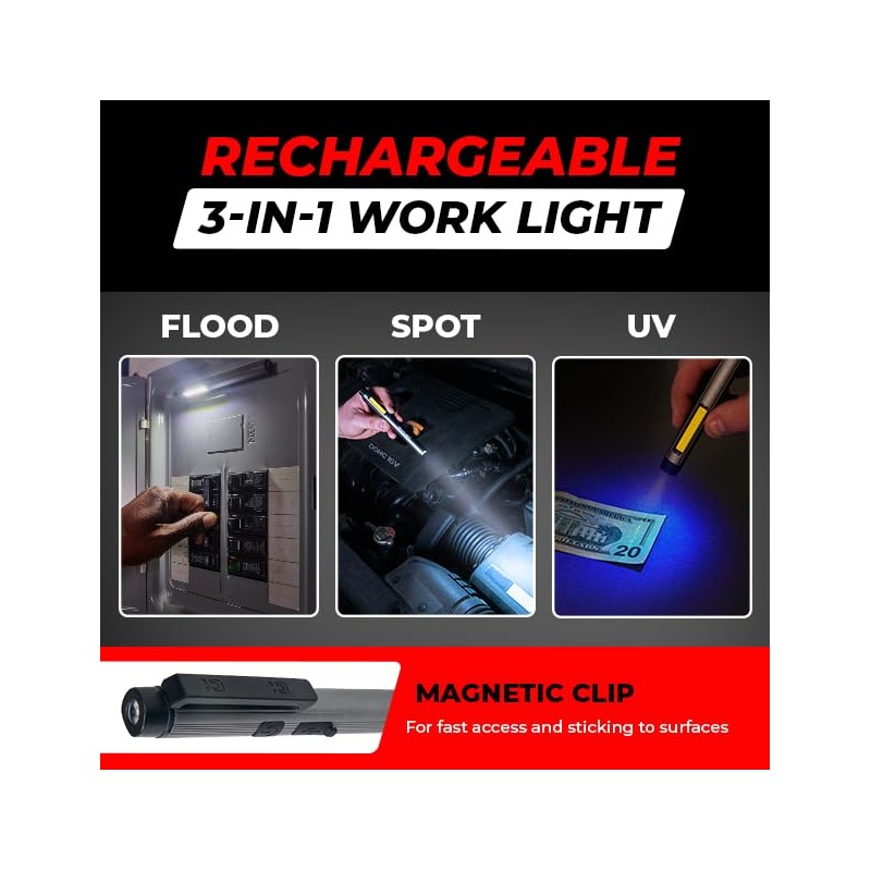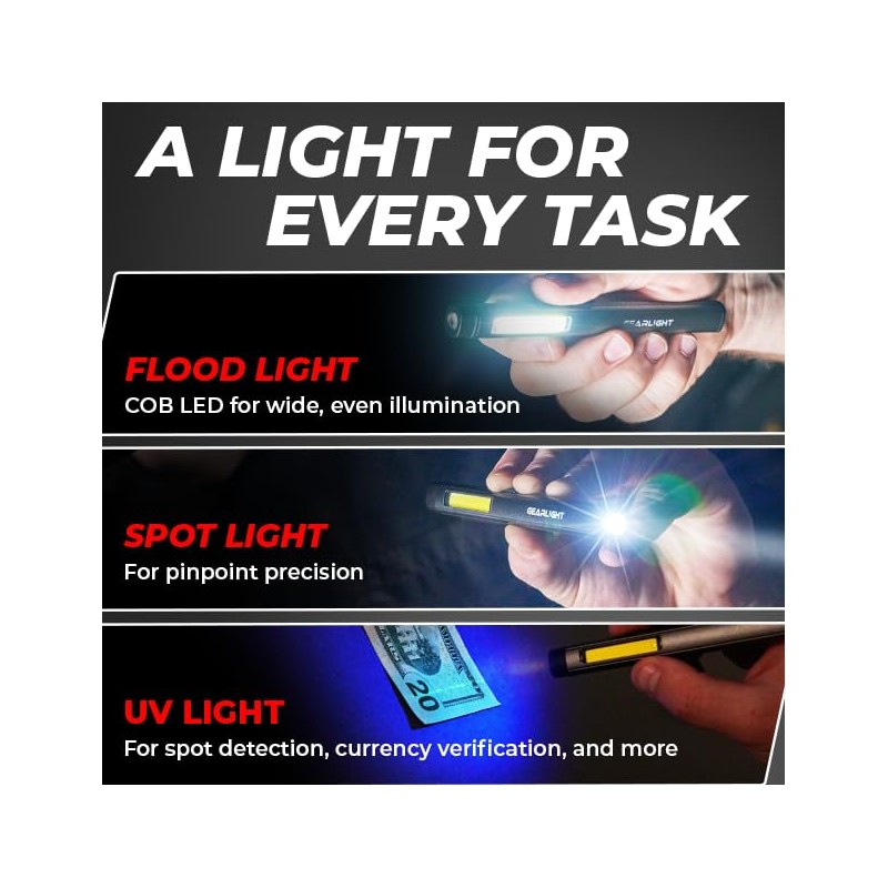 GearLight Rechargeable 3-in-1 LED Work Light with Magnetic Back, 3 Modes - Pen, Flood, UV, Great for Home, Garage, Compact Gift for Men