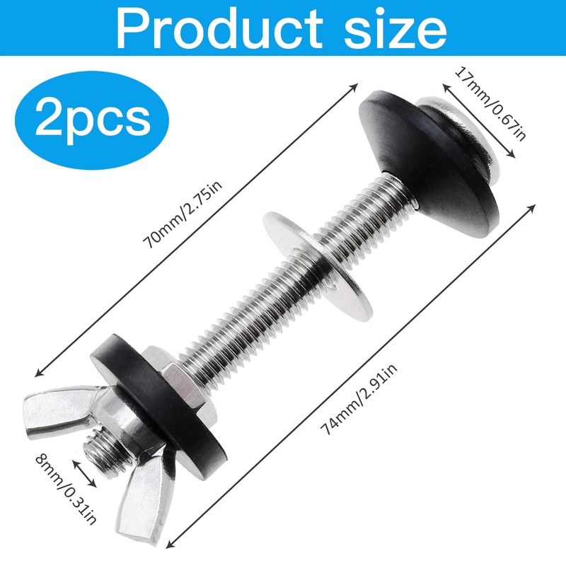 - Made of rubber and stainless steel, wear-resistant, corrosion-resistant, robust and durable, the size of the cistern screw is 74 x 16 x 8 mm, medium size, suitable for most toilets.