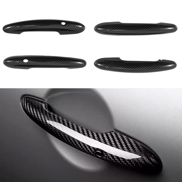 GearUp 4PCS Door Handle Cover Compatible with Mini Cooper F54 Clubman F55 Hatchback F60 Countryman w/Comfort Access Carbon Fiber Printing Door Handle Caps (w/Push Button)