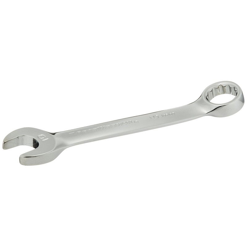 10mm 12 point stubby combination wrench. Large size stamp on open end.