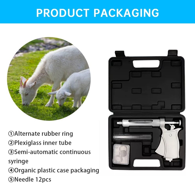 50ML Livestock Syringe Animal Injection Gun,Adjustable Continuous Injection Gun with 12Pcs Stainless Steel Injection Needles for Horses Cattle Pigs Sheep.