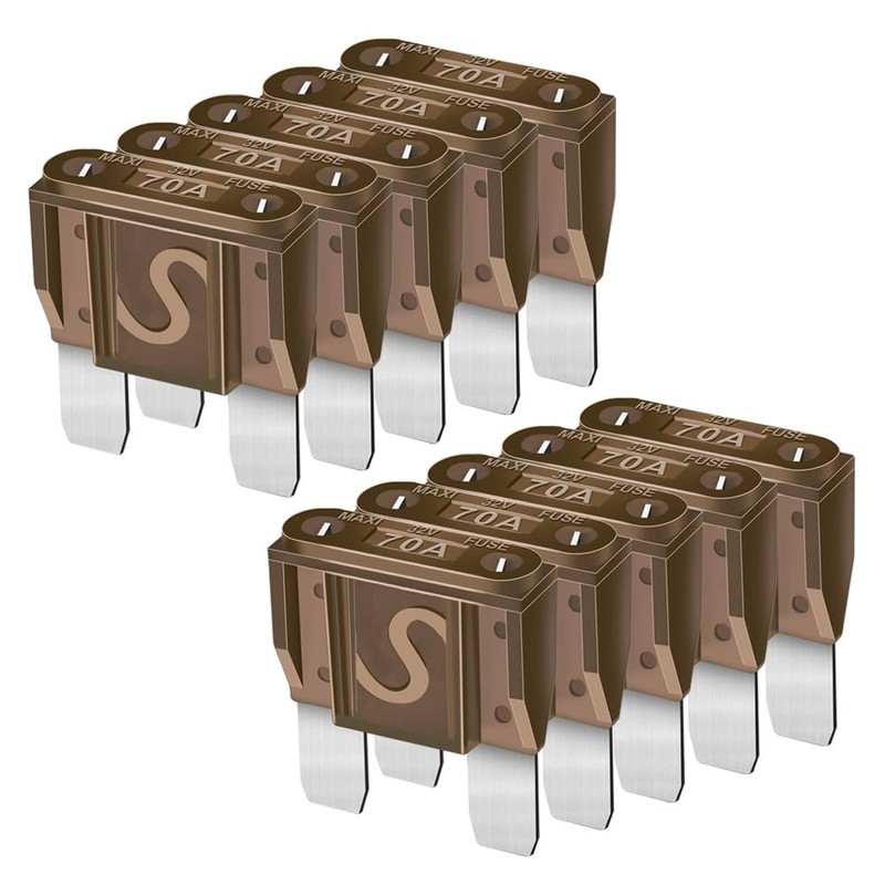 - Freely Choose - 10pcs maxi car fuses of the same current per pack, this item is 70Amp car fuse. You can freely match your need for AMP fuse. (This item is maxi fuse,not standard fuse. Please confirm the size you need when placing an order.)