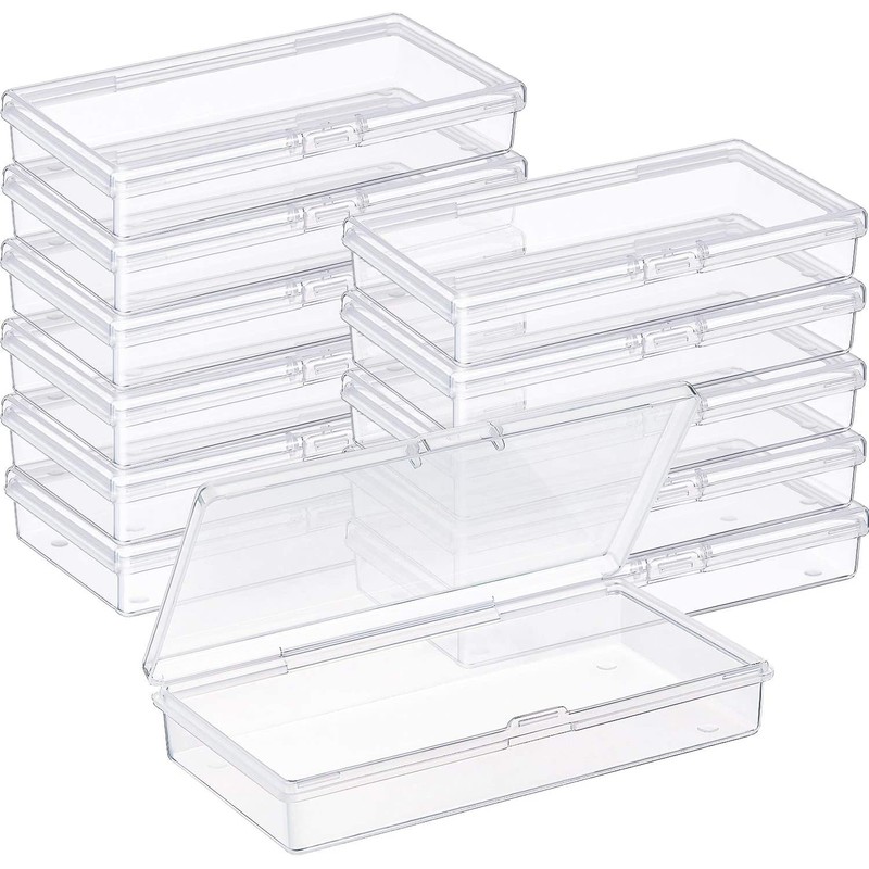 Gebildet 12pcs Small Clear Rectangular Plastic Bead Storage Containers Box Case with lid for Pills, Tiny Bead, Jewellery & Craft Items etc