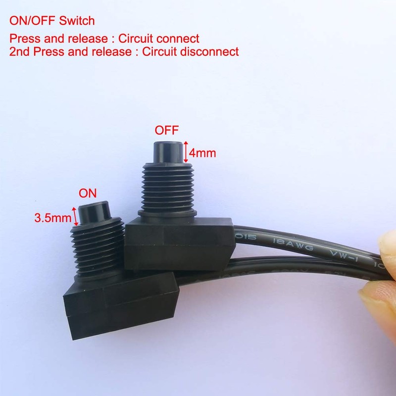 Gebildet 5pcs 0~250V/3 Amp Self-Locking Push Button Switch, Waterproof Wired Push Button On/Off Switch for Motorcycle/Car