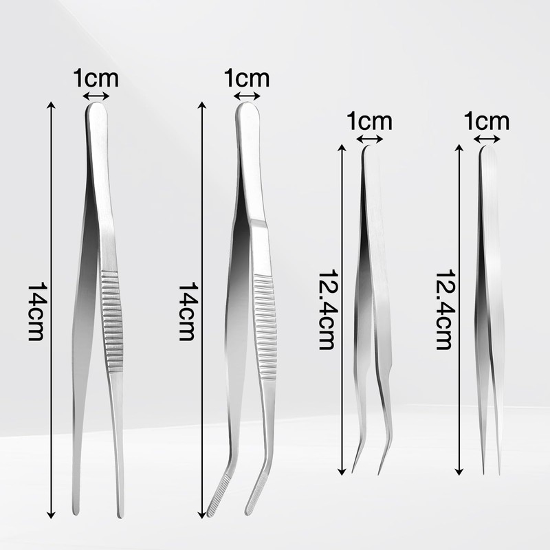 - 【Besonderheit】4 Verschiedene Stile, Zwei Größen, 14 Cm Gerader Kopf, Ellenbogen. 12 Cm Gerade Spitze, Gebogene Spitze Mit Abdeckung, Wodurch Sie Einfach Zu Bedienen Ist, Die Gebogene Pinzette Hat Einen Gezahnten Kopf, Der Die Reibung Erhöht Und Das Greifen Erleichtert, Und Einen Rutschfesten Griff, Der Einen Bequemen Halt Bietet