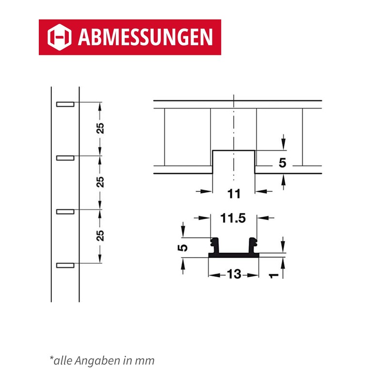 - Gedotec Aluminium shelf support for shelf rail for hanging and shelf support rail with pitch 25 mm