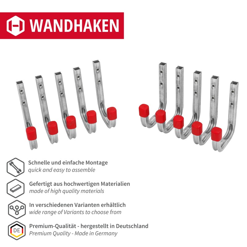 • ✅ Installation: particularly easy to install - the hook is screwed to the wall using the screws supplied. Straight support prevents lateral tilting or wobbling on the wall - ideal for warehouses, storage rooms, cellars, cabins, etc.