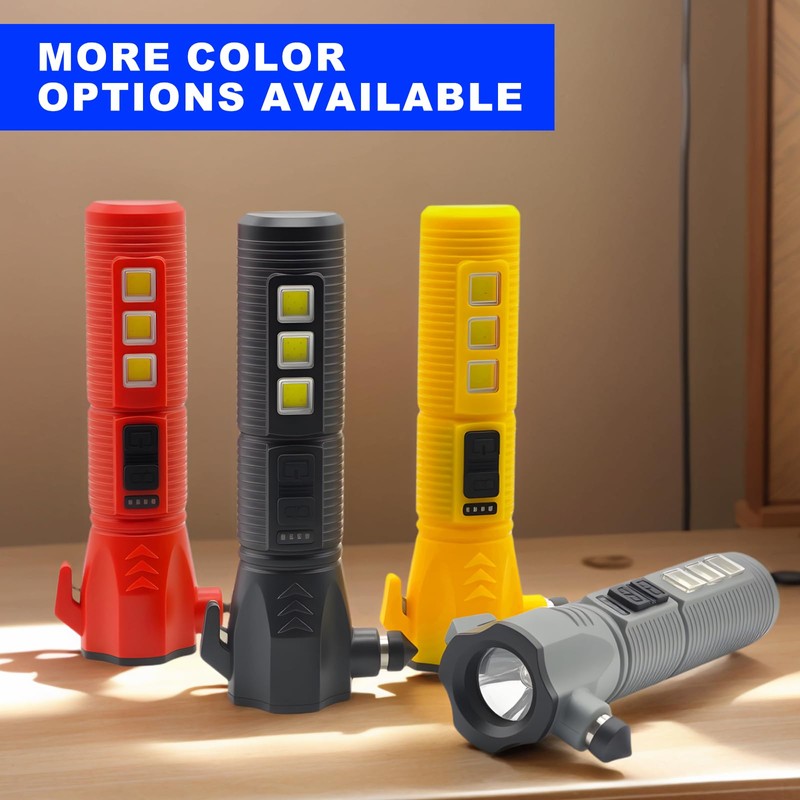 GEEBONFLUGENS Black Emergency Car Flashlight - 2000 Lumen Dual Light 4-Level Battery Indicator Window Breaker & Seatbelt Cutter USB Rechargeable Ultra-Light 108g Car Emergency Tool