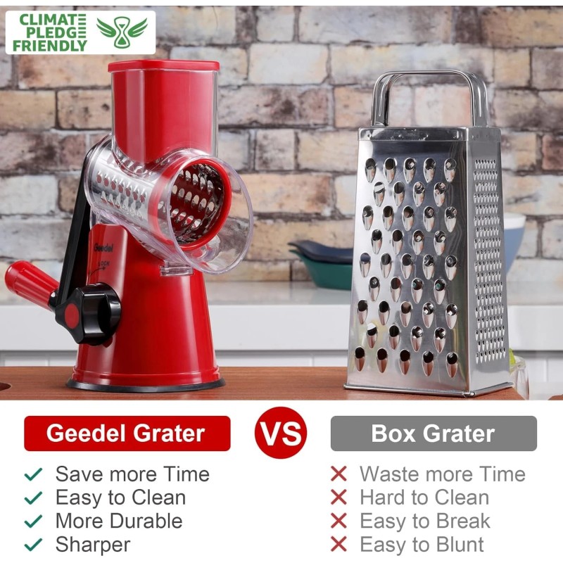 Geedel Rotary Cheese Grater, Kitchen Mandoline Vegetable Slicer with 3