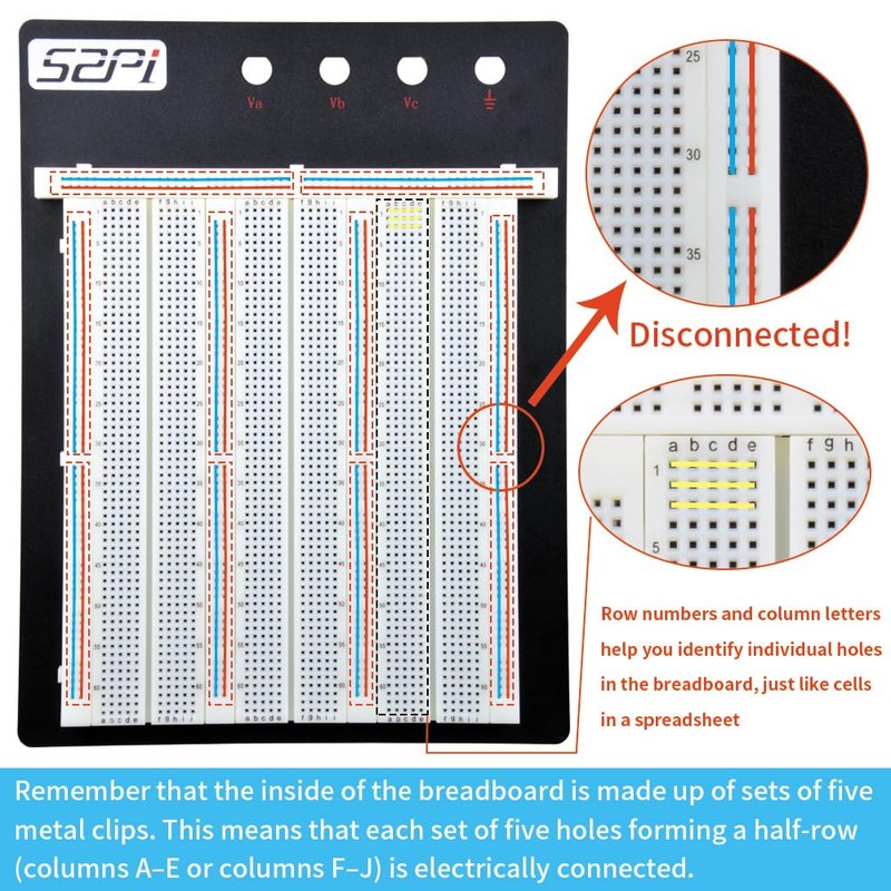 - Package Includes: 1x Black Iron Plate with 2390 Tie-Points Solderless Breadboard, 1x 65pcs Male to Male Jumper Wires, 1x 840PCS U-Shape Jumper Wires, 4x Wire Terminals, 4x Rubber Feet