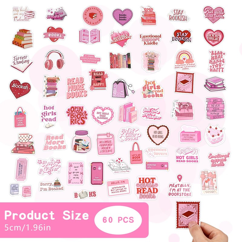 - 【Rosa Aufkleber-Set】 Sie erhalten 60 Stück sich nicht wiederholende rosa Buchaufkleber. Jeder Aufkleber ist etwa 1,96 Zoll groß und alle sind einzigartig. Niedliche und exquisite rosa Bücheraufkleber machen Ihre Artikel lustig und einzigartig und bringen Farbe ins Leben, perfekte Geschenke für Kinder und Freunde.