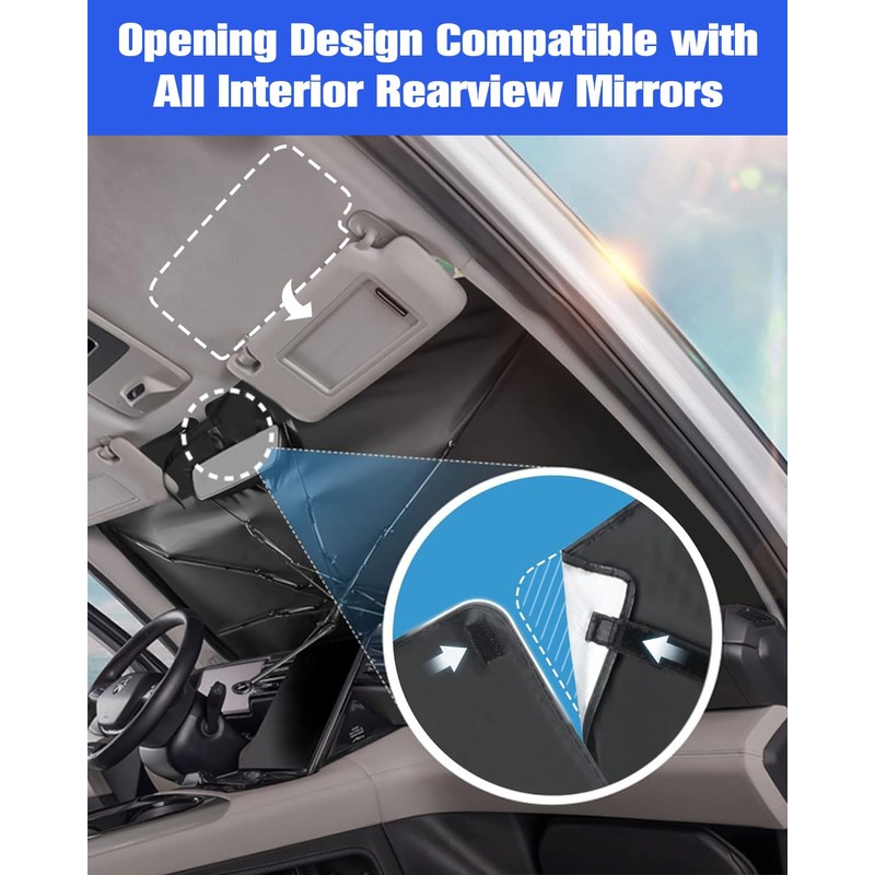 - Verbessertes Design Auto Sonnenschirm: Der Sonnenschutz Auto Frontscheibe verwendet eine um 360 °drehbare Welle, die Verstellbare Sonnenschirmstange aus TPE-Material, das Sonnenschirmstange ist biegbar und Ihr Armaturenbrett vor Kratzern schützen kann. Auto Frontscheiben Sonnenschutz bietet ein innovatives Öffnungsdesign, das sich flexibel an die Position verschiedener Rückspiegel unterschiedlicher Modelle anpassen lässt