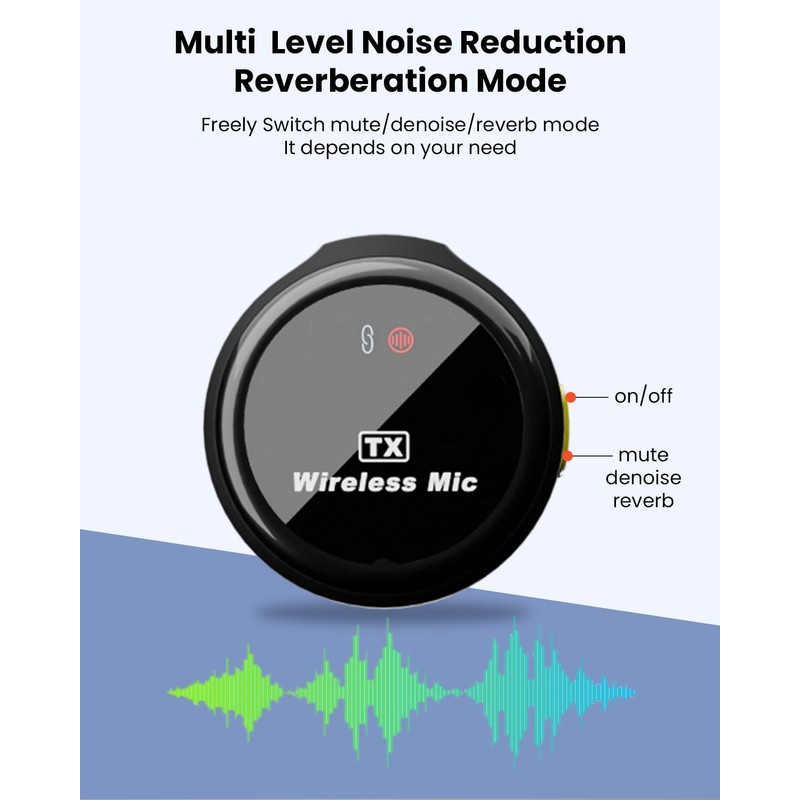 - Multi Functional 3-Mode Sound Control: This mini microphone supports three recording modes. Choose the mute mode for ultra quiet operation and low-key recording, choose the reverb mode to increase rich depth and dimension for enchanting vocals, or choose the noise cancellation mode to significantly reduce distracting background sound, ensuring that your voice is always loud and clear