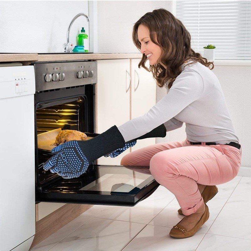 - 【FOREARM PROTECTION】 Oven Mitts are extremely heat resistant have a 13cm long sleeve to offer maximum protection for your wrist and arm, heat resistant gloves protect your hands from scalding or burning when you use these heat resistant gloves on cooking or grilling.