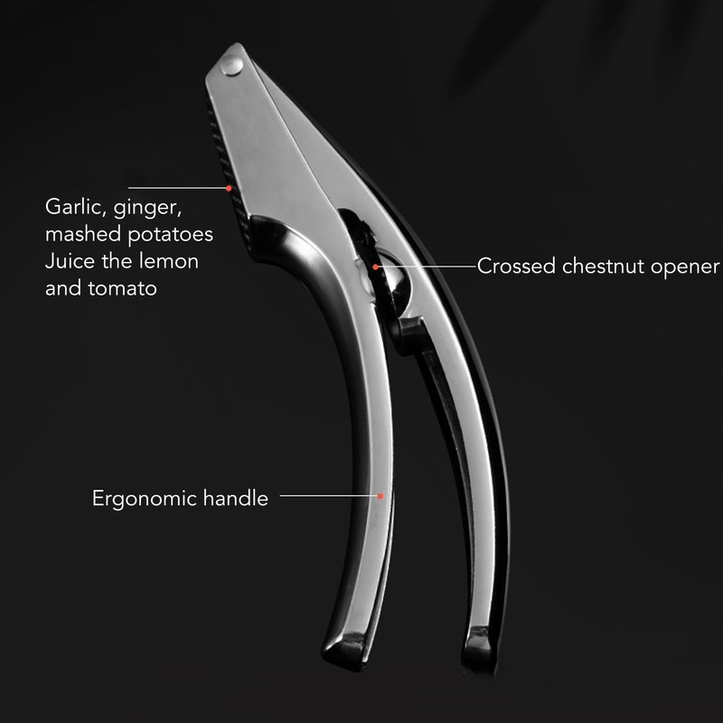 - Multifunctional Use This garlic press can not only be used for crushing garlic, but also for pressing ginger, juice, chestnuts, etc. It can also beat mashed potatoes, chopped garlic, etc. It is an indispensable all-purpose tool for the kitchen.
