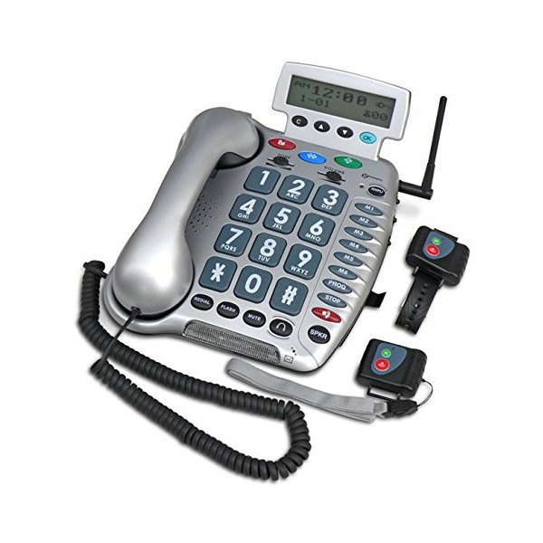 HOW DOES THE EMERGENCY FEATURE WORK? In the event of an emergency, the wearer presses the emergency button on the small wrist transmitter or the phone. Once the emergency button is pressed, the six pre-programmed emergency contact numbers are dialed, such as family members, friends or neighbors who would be able to respond to the emergency call. If there is no response after 30 seconds or the line is busy, the phone automatically dials the next pre- programmed phone number. It will cycle through the emergency numbers twice. When the phone reaches a live person, it will play your pre-recorded emergency message. The other person will dial a number (0-9) to confirm that the emergency message has been received and to deactivate the phone from dialing the next emergency contact number. The AEC phone then turns on its speakerphone so that the emergency contact is able to speak and listen to the other user, known as Remote Audio Monitoring.