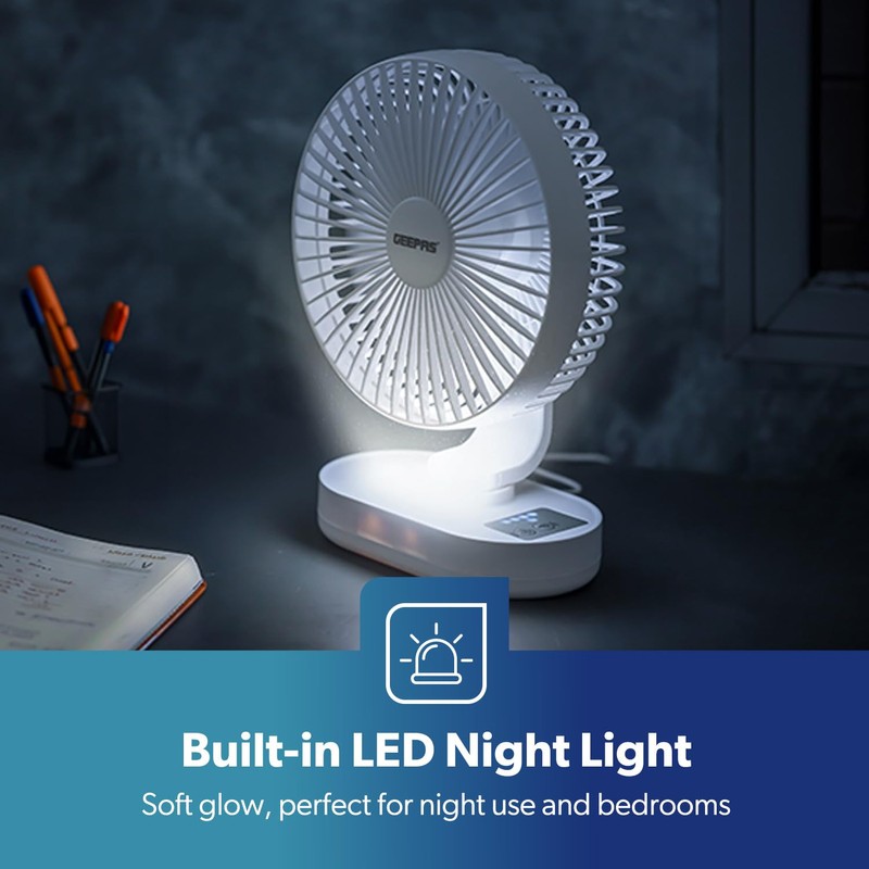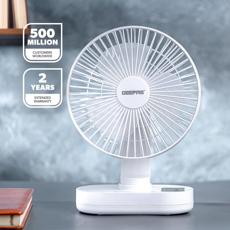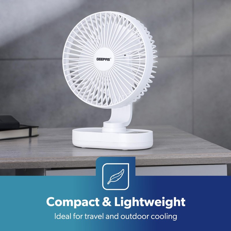 - ✅ AC/DC FUNCTIONALITY: The Geepas rechargeable fan is equipped with AC/DC functionality, ensuring continuous operation whether connected to mains power or relying on its internal battery, providing seamless cooling even during power outages.