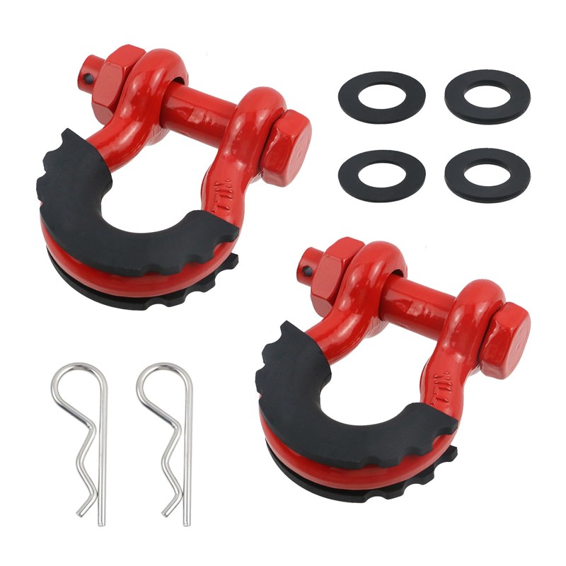 Geesatis 2Pcs D Ring Shackle,Heavy Duty Shackles with Washers,D Shackle for Tow Strap Winch Off Road Vehicle Recovery (Red)