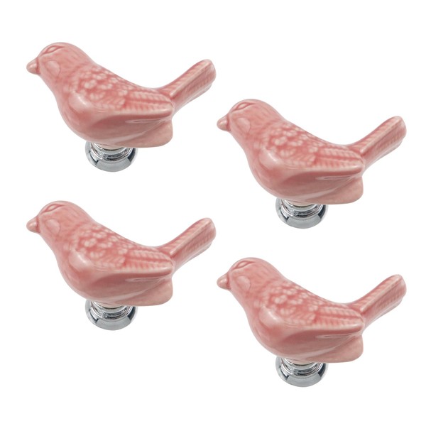 Geesatis 4 Pcs Toilet Tank Button Ceramic Sticky Toilet Press Flush Button Pusher Tool, Pink Bird