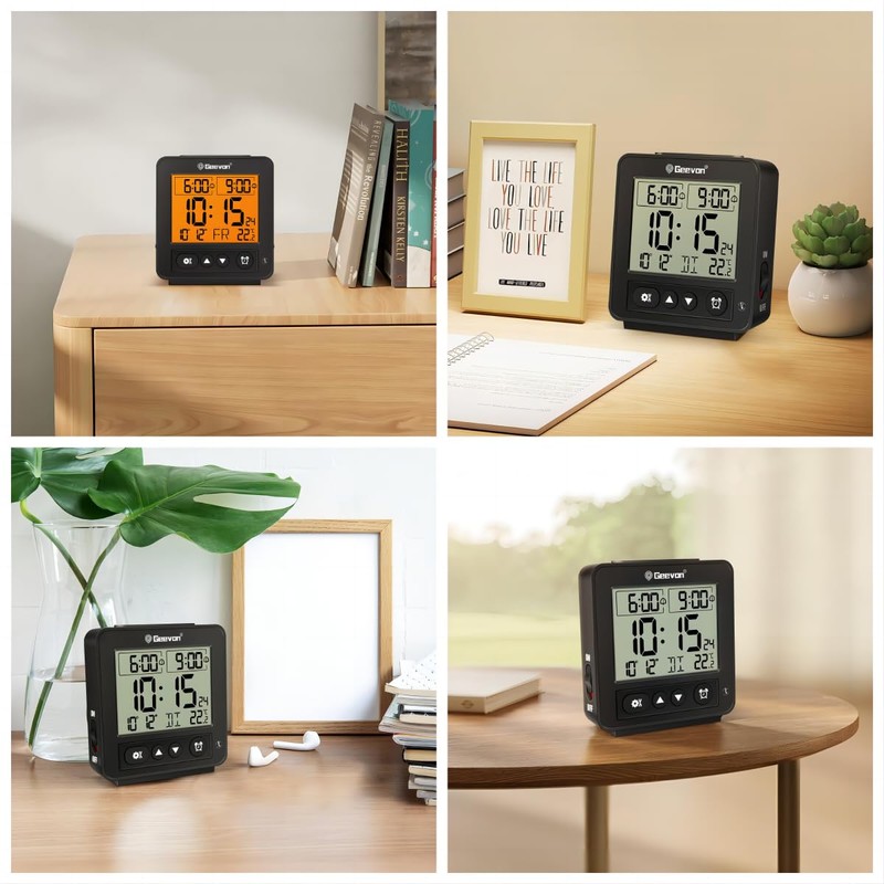 Geevon Geevon Small Atomic Travel Alarm Clock with Auto/8s Backlight, 2 Alarm Settings, Temperature, Increasing Beep Sounds Digital Atomic Travel Clock Battery Operated for Bedroom, Bedside, Black