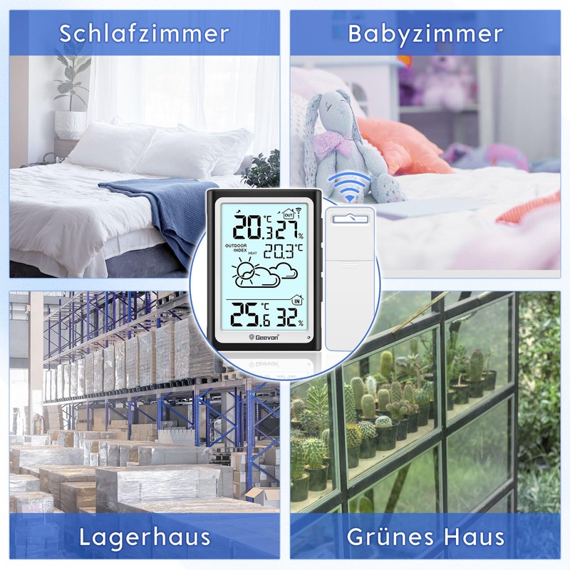 Geevon Wireless Weather Station with Outdoor Sensor, Weather Station with Forecast Thermometer Hygrometer Indoor Mould/Dew/Heat Humidity Meter Indoor and Outdoor Temperature Temperature Meter