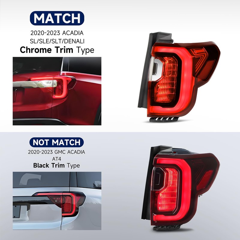 - Perfect Fit & OEM Replacement – Gefitway LED Tail Light assembly is a perfect match for 2020 2021 2022 2023 GMC Acadia SL SLE SLT Denali, replacing GM2801316, 84863045