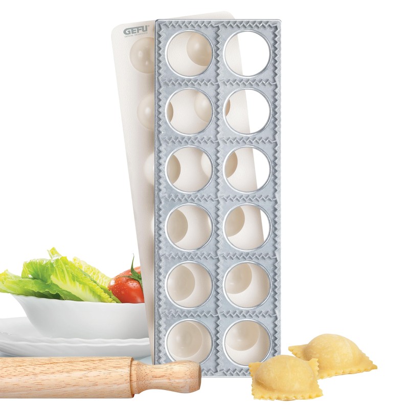 - Run the supplied rolling pin across the maker and tip out your 12 pieces of ravioli!