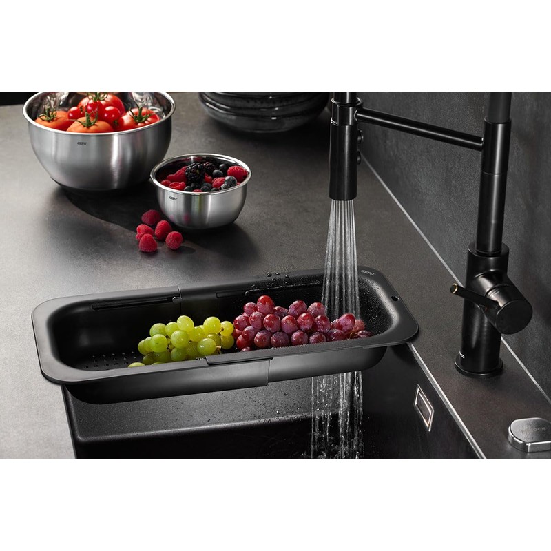 - Flexible extension for various sinks: the strainer can be adjusted from 34 to 47 cm and fits into almost any standard sink - ideal for small and large kitchens
