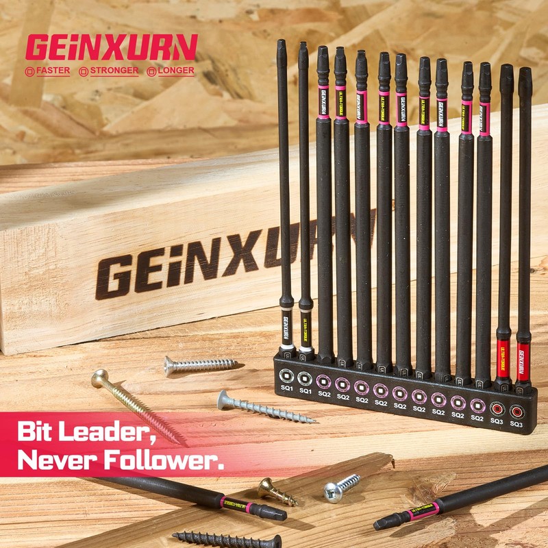 Geinxurn 13pcs 6” Double Impact #1#2#3 Square Screwdriver Bits Set,(PH1/PH2/PH3) Magnetic D2 Steel Long Extension Driver Bits Set with Color Coded Base
