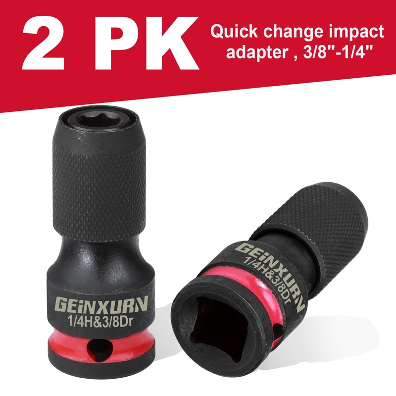 Geinxurn 2PCS Impact Screwdriver Bit Holders, 3/8-Inch Square Drive to 1/4-Inch Quick Release Hex Socket Adapter for Impact Wrench
