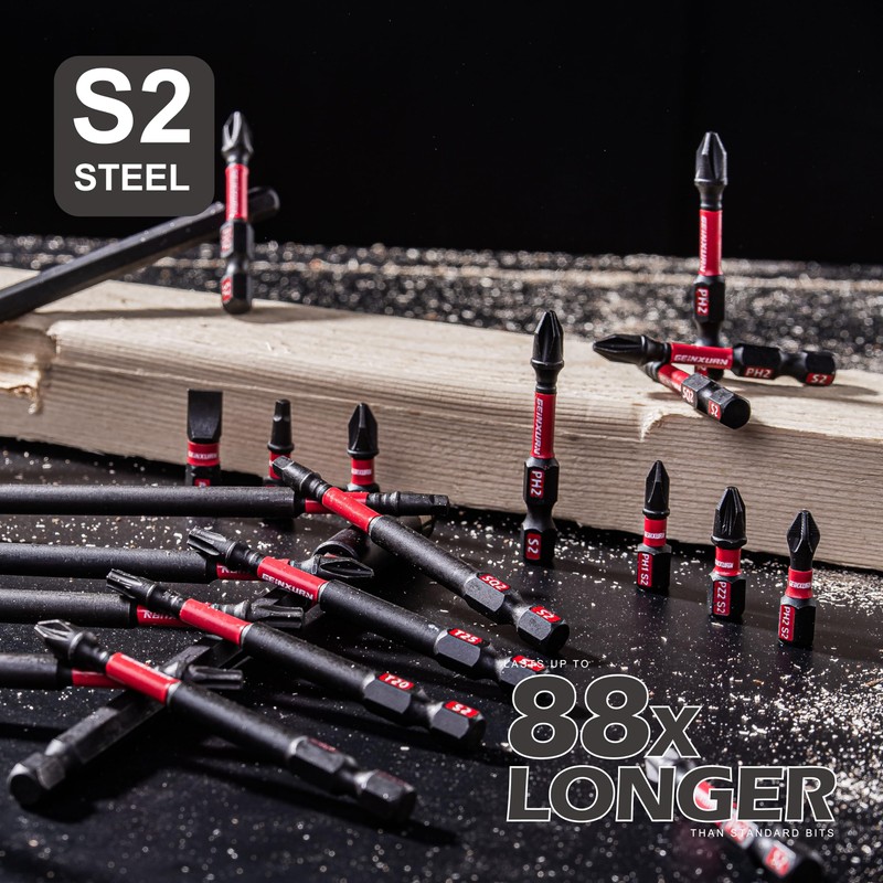 - IMPACT RATED BITS — Impact Shock Absorbent Zone stands up to impact drivers. It can be handle a new generation of higher torque impact drivers.