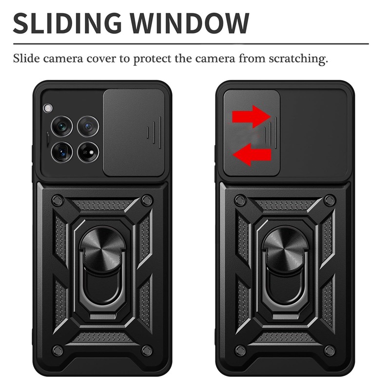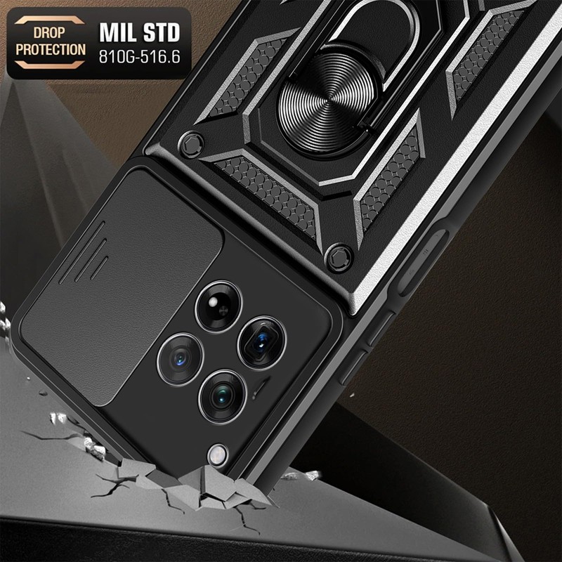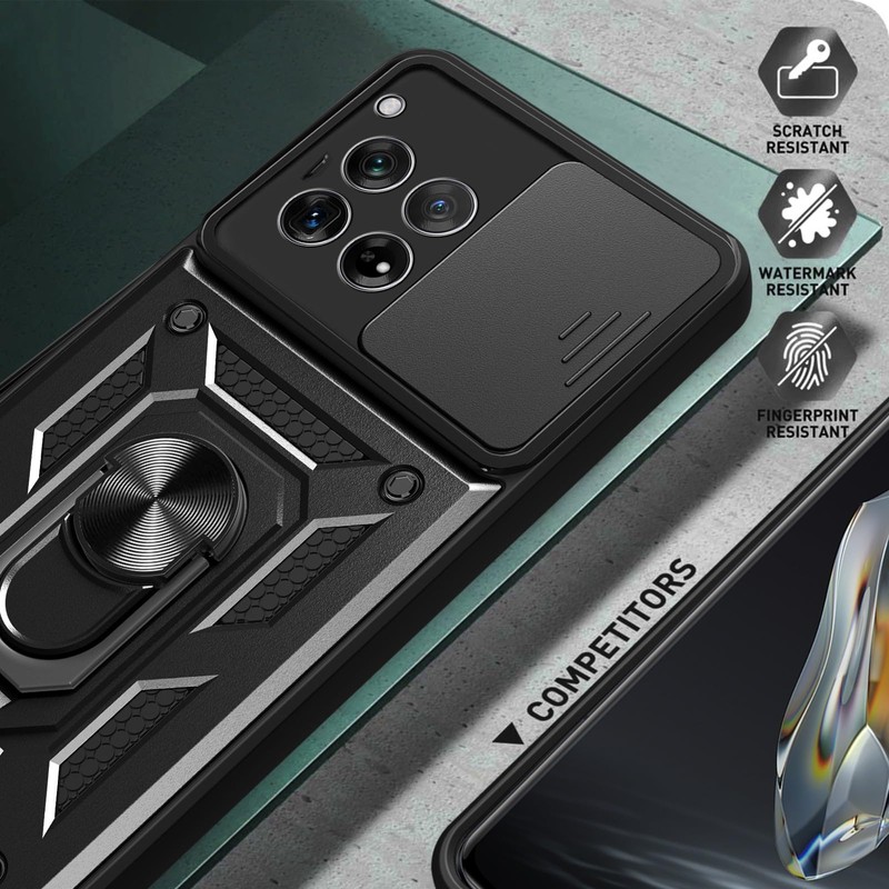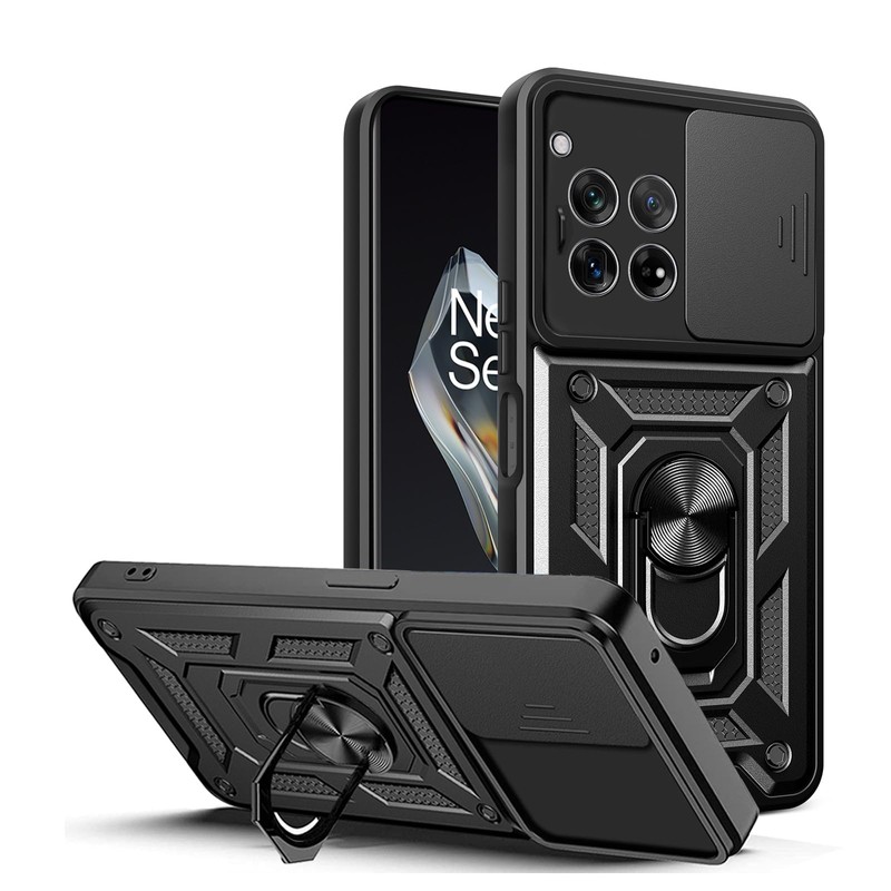 GEJEFA Case for OnePlus 12, Ring Kickstand Military Grade TPU&PC Hybrid Protective Rugged Case with Sliding Camera Cover for OnePlus 12, Black