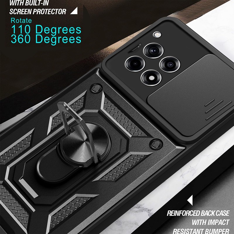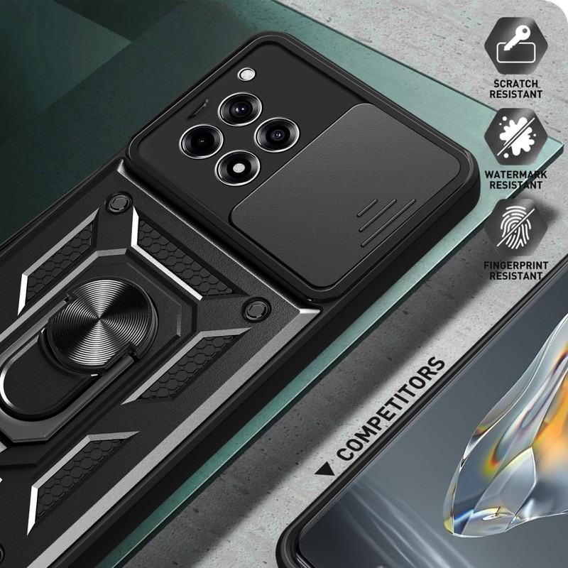 GEJEFA Case for OnePlus 12R, Ring Kickstand Military Grade TPU&PC Hybrid Protective Rugged Case with Sliding Camera Cover for OnePlus 12R, Black