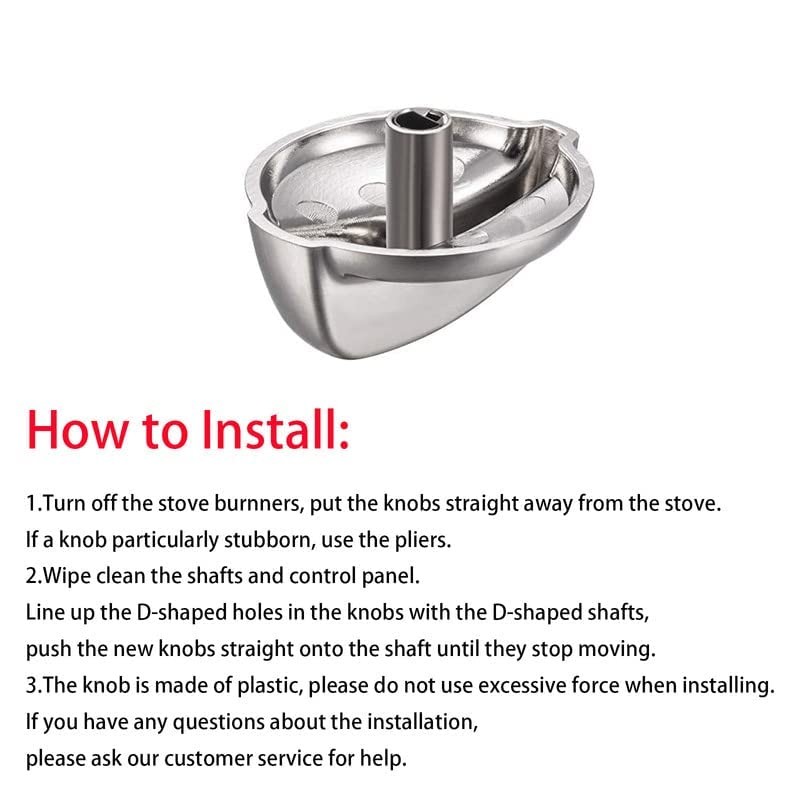 - The knobs size: the installation hole diameter (D shaft size) is 0.236 inch/ 0.6 cm in length, 0.19 in/0.48 cm in width (please refer to picture 3), please measure insert size of your broken burner knobs to make sure this knob fits your model before purchasing. Note: our products are measured manually, so there will be tiny errors in the actual size data of the product