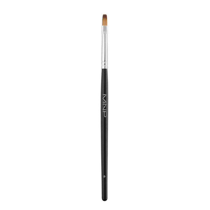 Flat tip gel brush no. 6 MNP flat synthetic bristle brush size 6, ideal for easy gel application. The flat tip allows for perfect modelling of the builder gel to the edge of the nail. The bristles are made of premium quality highly elastic synthetic fibres. This allows the product to spread out with wide, defined lines while ensuring an optimal hold of the shape. Perfect also for extremely precise French manicures. Capacity: