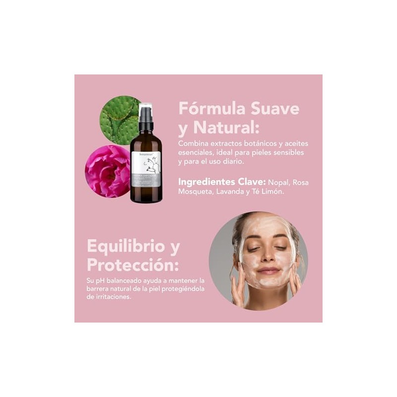 Gel Dermolimpiador Facial con Rosa Mosqueta, Nopal y Tea Tree - Botanicus 120ml Limpieza Profunda e Hidratacin Natural para Pieles Sensibles y...